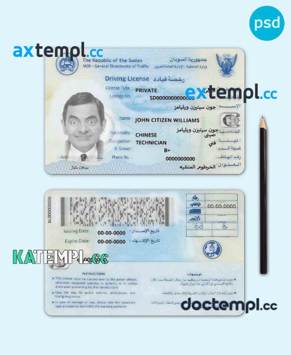 sample Sudan driving license PSD template, with fonts download