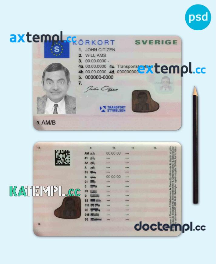 sample Sweden driving license PSD template, with fonts download