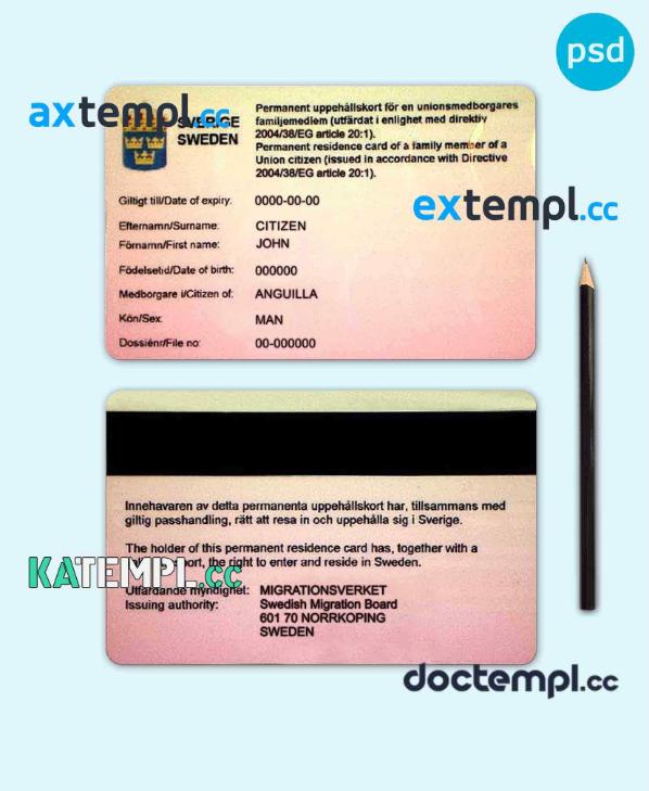 sample Sweden permanent residence card PSD template, with fonts download