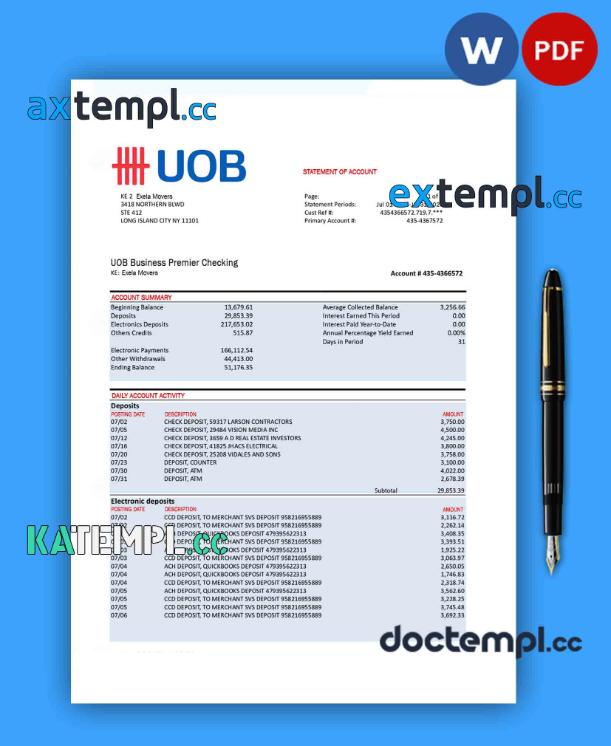 sample UOB (United Overseas Bank) firm account statement Word and PDF template download
