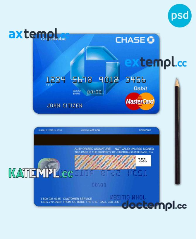 sample USA Chase bank MasterCard Debit card template in PSD format, fully editable download