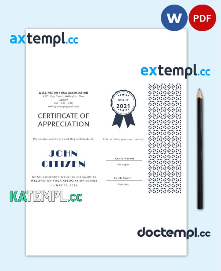 sample USA Customer Appreciation Certificate template in Word and PDF format, version 2 download