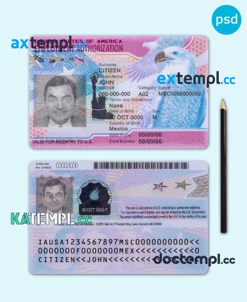 sample USA employment authorization card PSD template, with fonts download