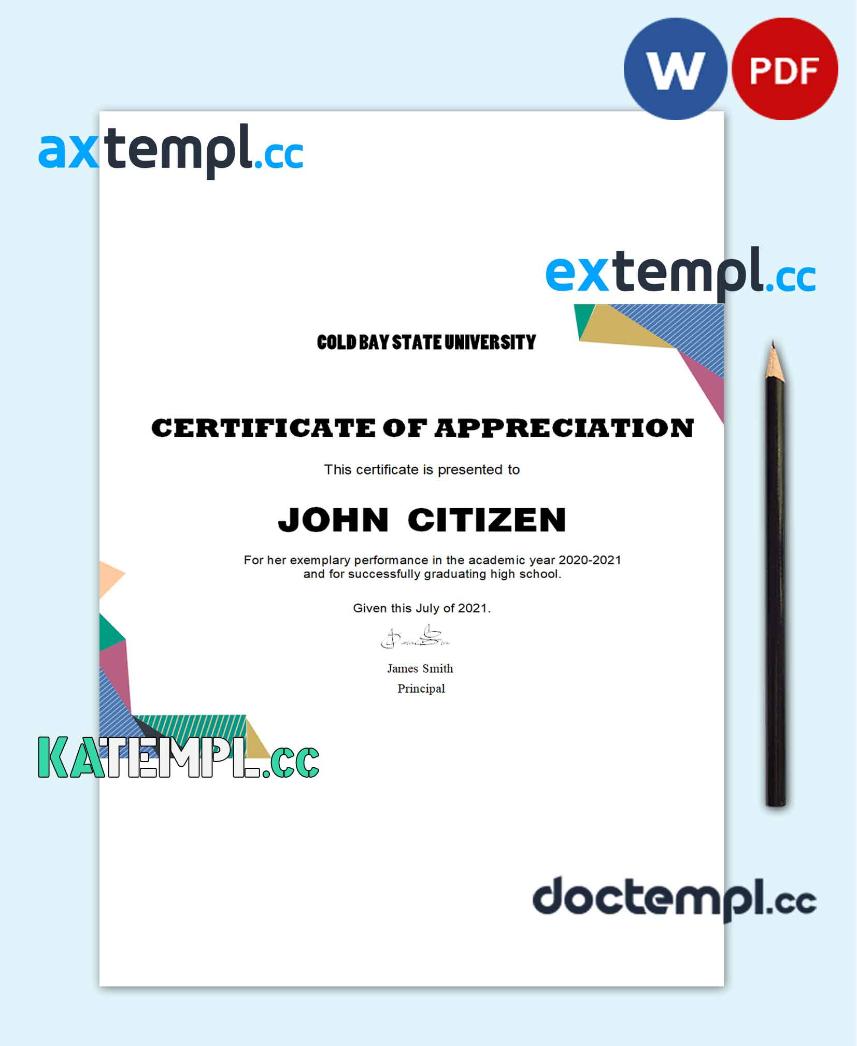 sample USA Graduation Appreciation certificate template in Word and PDF format download