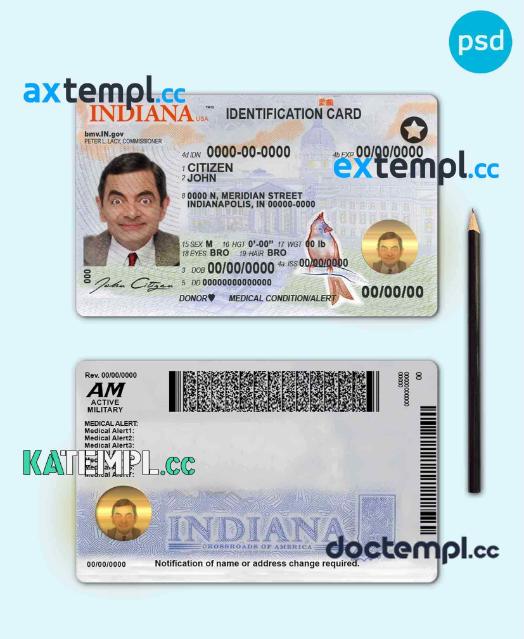 sample USA Indiana state ID template in PSD format, fully editable download