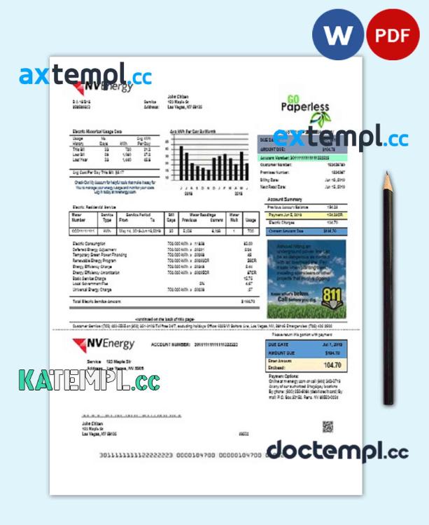 sample USA Nevada NV Energy utility bill template in Word and PDF format download