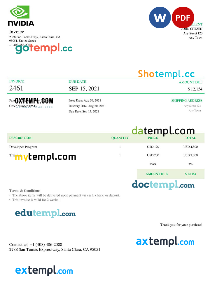 sample USA Nvidia invoice template in Word and PDF format, fully editable download