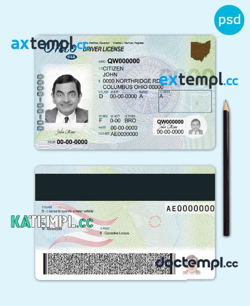 sample USA Ohio state driving license template in PSD format download