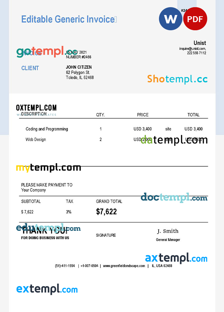 sample USA Unist invoice template in Word and PDF format, fully editable download