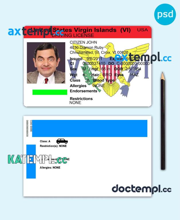 sample USA Virgin Islands driving license template in PSD format download