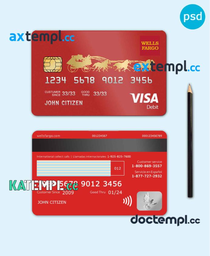 sample USA Wells Fargo bank visa debit card template in PSD format, fully editable download
