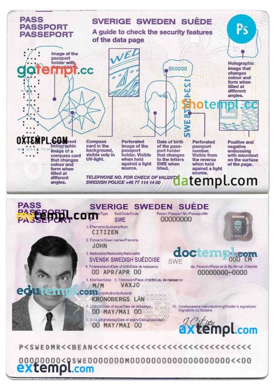 Sweden passport Photoshop template two in one with photo look and scan PSD files, which has a clean design and multi-functional solution.