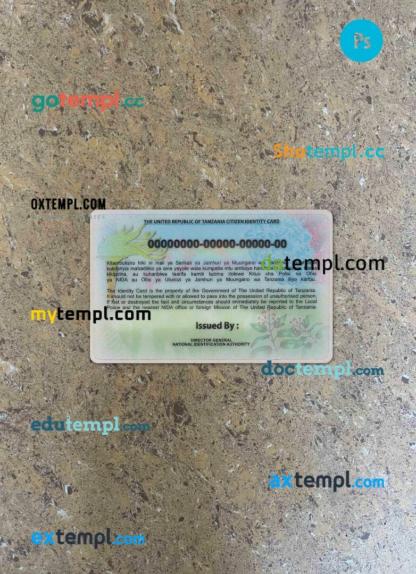 Our Tanzanian ID card template offers two options in one package: editable PSD files for both photo and scan looks.