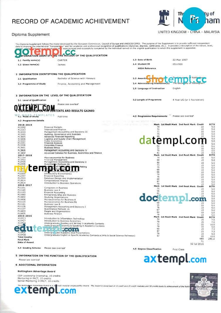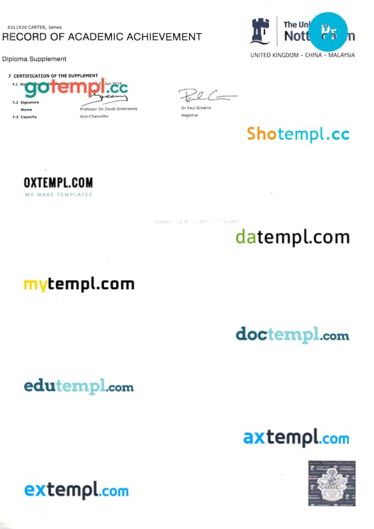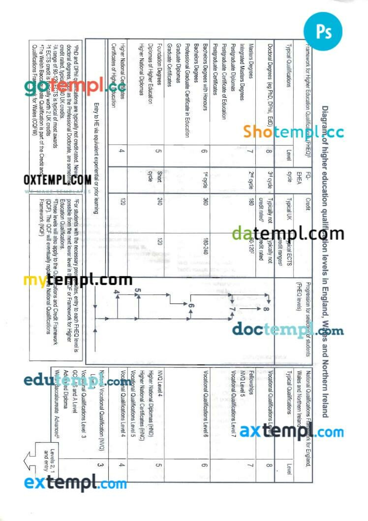 Fully editable sample of official academic transcript of records in PSD format – easy to fill.