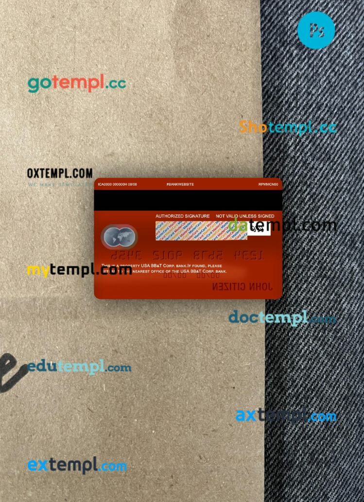Our USA BB&T Corp. bank mastercard PSD template offers a dual option in one convenient package.