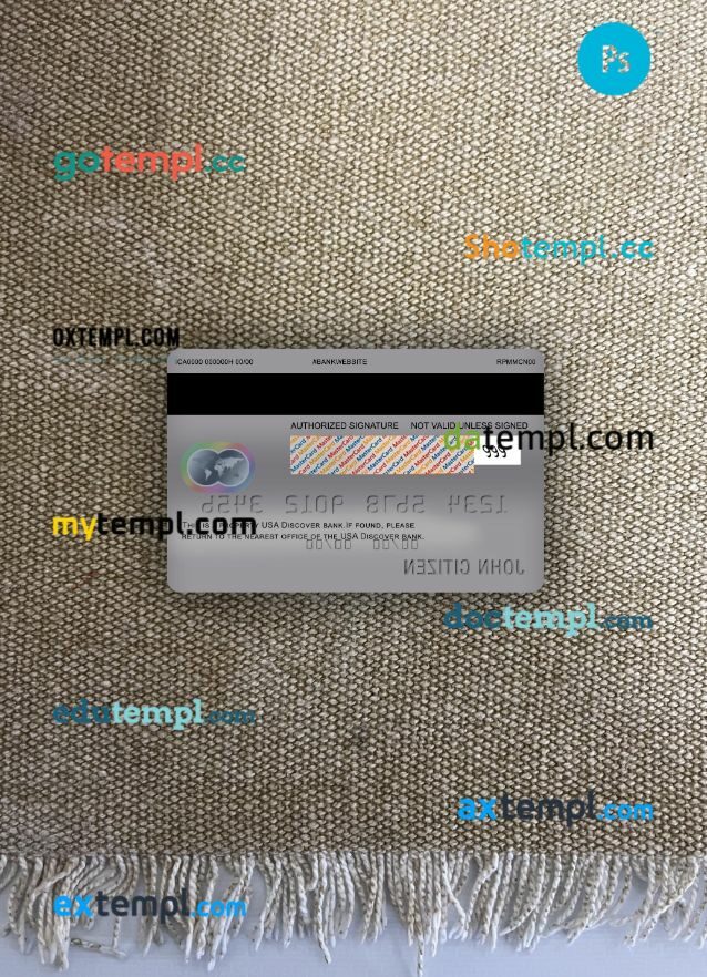 USA Discover bank mastercard PSD scan and photo taken image, 2 in 1