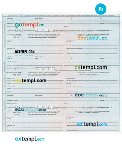 ○ title assignment section with buyer and seller’s names, addresses, date of sale, and signatures.