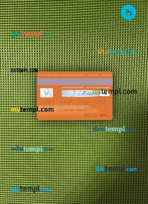 Our USA New York Community Bank visa card PSD template provides a multi-functional solution with a clean design, providing both the front and back of the card for a realistic look.