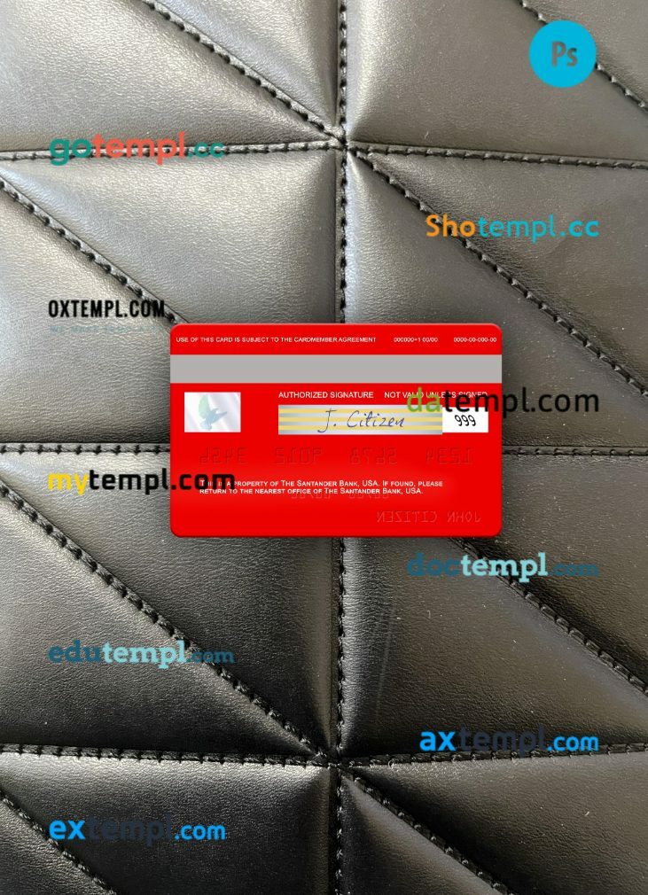 Our USA Santander Bank visa card PSD template provides a multi-functional solution with a clean design, providing both the front and back of the card for a realistic look.
